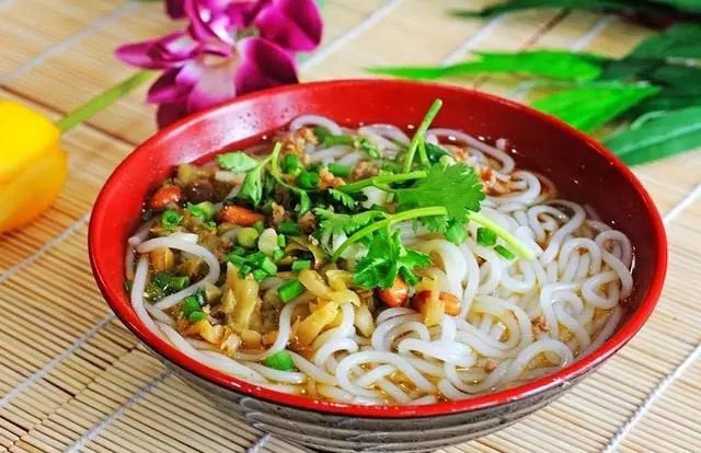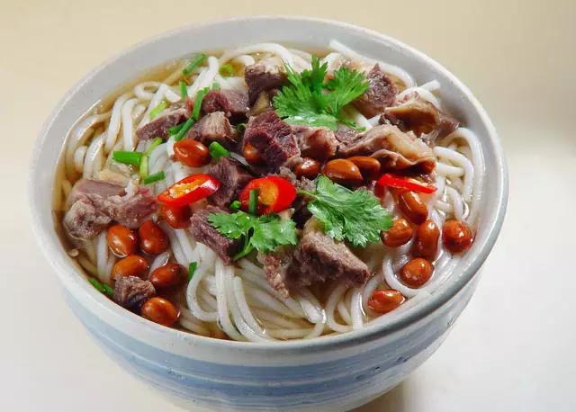 過(guò)橋米線是云南滇南地區(qū)特有的漢族小吃,屬滇菜系。過(guò)橋米線起源于蒙自地區(qū)。過(guò)橋米線湯是用大骨、老母雞、云南宣威火腿經(jīng)長(zhǎng)時(shí)間熬煮而成的。過(guò)橋米線由四部分組成:一是湯料覆蓋有一層滾油;二是佐料,有油辣子、味精、胡椒、鹽;三是主料,有生的豬里脊肉片、雞脯肉片、烏魚片,以及用水過(guò)五成熟的豬腰片、肚頭片、水發(fā)魷魚片;輔料有來(lái)過(guò)的豌豆尖、韭菜,以及芫荽、蔥絲、草芽絲、姜絲、玉蘭片、氽過(guò)的豆腐皮;四是主食,即用水略燙過(guò)的米線。鵝油封面,湯汁滾燙,但不冒熱氣。過(guò)橋米線已被列入非物質(zhì)文化遺產(chǎn)。