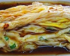 而我更喜歡欣賞的是腸粉出鍋的那一剎——在騰騰水霧中,那一塊布被拉起來,粉案上便變摩術(shù)般地變出一塊白玉般的“布”,這熱辣辣的“布”被快手地卷起來,疊到碟子上,如一卷卷袖珍的白綾。如果是牛肉腸,豬肉腸,你還隱隱的見到白綾上的“花紋”。每當(dāng)此刻,我都對(duì)拉腸粉的師傅徒生敬意。此等對(duì)白米是何等的深情,好比年復(fù)一年日復(fù)一日地站在熊熊烈火前“織布”,一生織出多少萬丈“白綾”,織出廣府飲食文化燦爛的一章。毫不否認(rèn),將大米化作美味美食,離不開這個(gè)拉腸粉機(jī)器啦!
