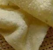 母親把預先洗好的簸箕放在大砧板上,再用小鐵勺舀了兩小勺子的米漿倒進簸箕里。隨后,她再用雙手端定那簸箕,向上又向下地左右慢慢傾斜,使那些米漿能勻稱地布置在簸箕上。