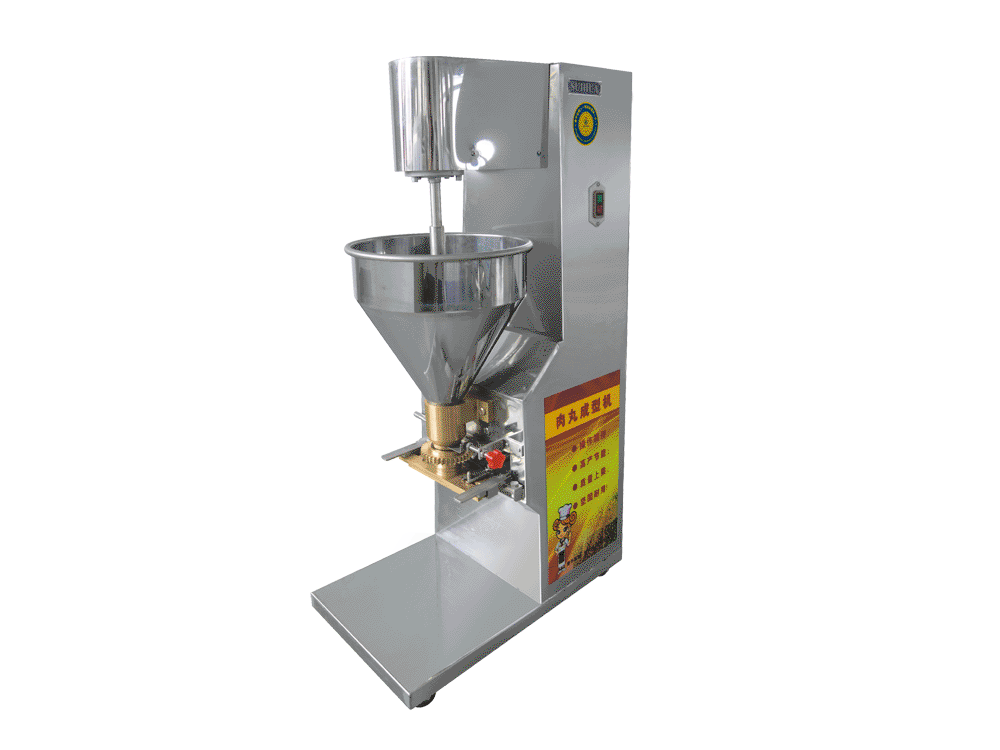 廣東穗華牌肉丸成型機,屬商用肉丸機設備。該機是模擬人工用匙子成型的原理,經技術攻關研制而成。用該肉丸子設備生產的肉丸,具有密度小、圓度好、外表光滑等優點。適用于生產牛肉丸、豬肉丸、魚肉丸、雞肉丸、貢丸等,所制作的肉丸彈性好、韌性佳、久煮不散。同時,該肉丸機還具有工藝簡單、操作方便,品種和口味可自由變換等優點。